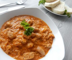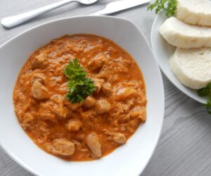 Segedínský guláš podáváme s houskovým knedlíkem.