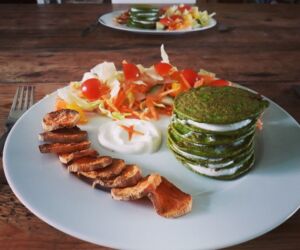 Skvělé brokolicovo-špenátové placky s batáty, podáváme se zeleninou.