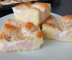 Buchta s malinovým pudinkem je vynikající, je krásně vláčná a skvěle vypadá.