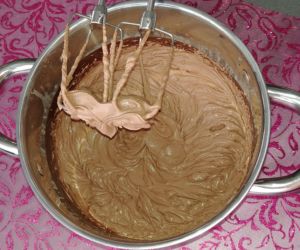 Do hrnce nalijeme smetanu, přidáme cukr, proseté kakao a za stálého míchání přivedeme k varu. Poté odstavíme, přidáme nasekanou čokoládu a rozmícháme dohladka. Necháme zchladnout, zakryjeme a necháme v lednici přes noc ztuhnout.