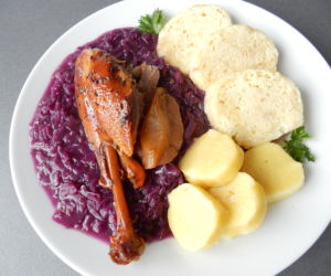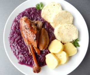 Husu podáváme nejlépe s červeným zelím, houskovým a bramborovým knedlíkem.