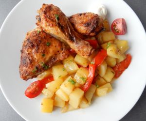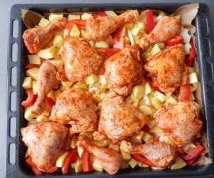 Osvědčený recept na báječné jídlo z jednoho plechu. Kuře s brambory a zeleninou, po kterém budete mít boule za ušima. Rychlé a jednoduché.