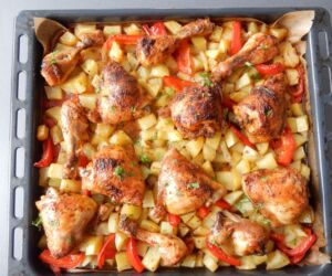 Osvědčený recept na báječné jídlo z jednoho plechu. Kuře s brambory a zeleninou, po kterém budete mít boule za ušima. Rychlé a jednoduché.