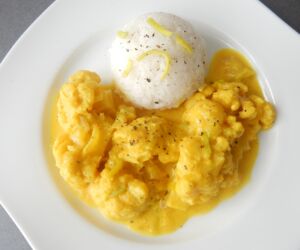Květák na kari podáváme s rýží.