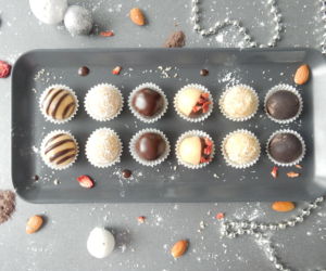 Mandlové kuličky obalíme dle libosti v kakau, mletých oříšcích či v čokoládě a naskládáme do papírových košíčků.