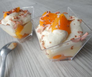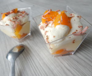 Vynikající minidezerty s broskvemi, ovoce můžete obměňovat dle chuti. Minidezerty chutnají skvěle například s čerstvými malinami nebo jahodami či s rozvarem lesního ovoce. Hodí se také jako minidezerty na svatbu.
