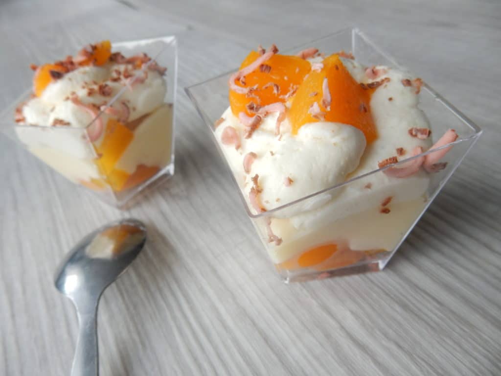 Vynikající minidezerty s broskvemi, ovoce můžete obměňovat dle chuti. Minidezerty chutnají skvěle například s čerstvými malinami nebo jahodami či s rozvarem lesního ovoce. Hodí se také jako minidezerty na svatbu.