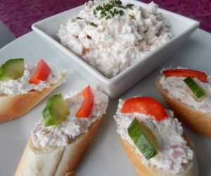 Vynikající a rychlá pomazánka se strouhaným sýrem a šunkou.