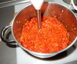 Přepůlené šípky dáme do hrnce a zalijeme vodou, aby byli potopené. Přivedeme k varu a vaříme 20 minut. Poté vše rozmixujeme.