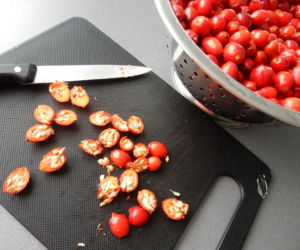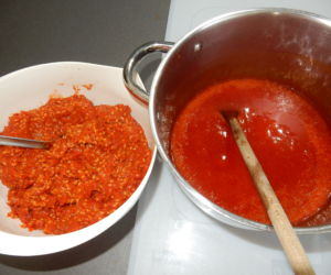 Přepasírované šípky zvažte a přidejte 1/3 váhy cukru (pokud budete mít například 900g, přidejte 300g cukru). Přiveďte k varu a vařte marmeládu do požadované hustoty (5 – 20 minut).