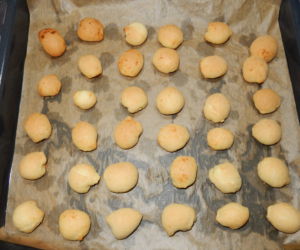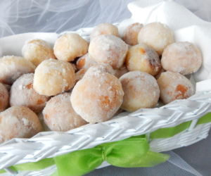 Upečené koláčky celé ponoříme do rozpuštěného másla s rumem. Poté koláčky obalíme v moučkovém cukru smíchaném s vanilkovým cukrem.