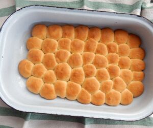 Buchtičky necháme na plechu ještě asi 15 minut kynout. Buchtičky pečeme v předehřáté troubě na 180°C přibližně 25 – 30 minut.