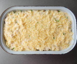 Osvědčený recept na skvělé zapečené těstoviny s krůtím masem, smetanou a hráškem.